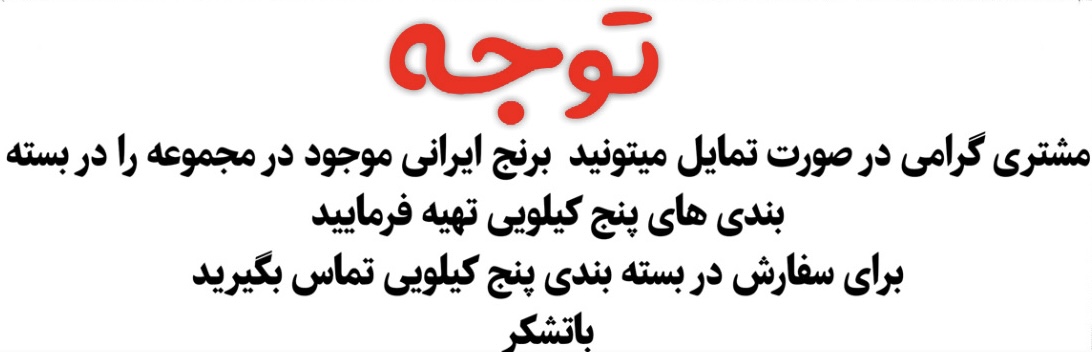 اين برنج با عطر و طعم خود هر مصرف كننده اى را محسور خود كرده هم معطر بوده هم بسيار خوش خوراك و خوش طعم ميباشد: ١٠ كيلوگرم