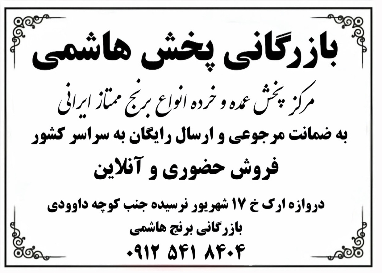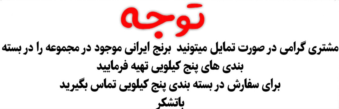 اين برنج محصول مازندران بوده و يكى از انواع برنج خوشپخت و خوش طعم ميباشد كه با پخت درجه يك و مجلسى همچنين رى بالا توجه هر كدبانويى را به خود جلب نموده است: ١٠ كيلوگرم